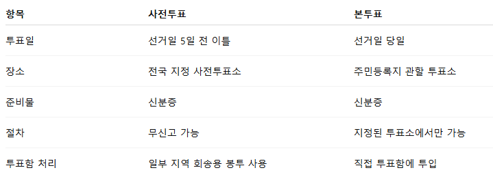 사전투표와 본투표의 차이는 다음과 같습니다.